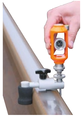 La cale coulissante à disposition réglable est garnie d'un caoutchouc mousse. Après sa mise en place en dimension; le système garantit un positionnement précis du point de mesure.